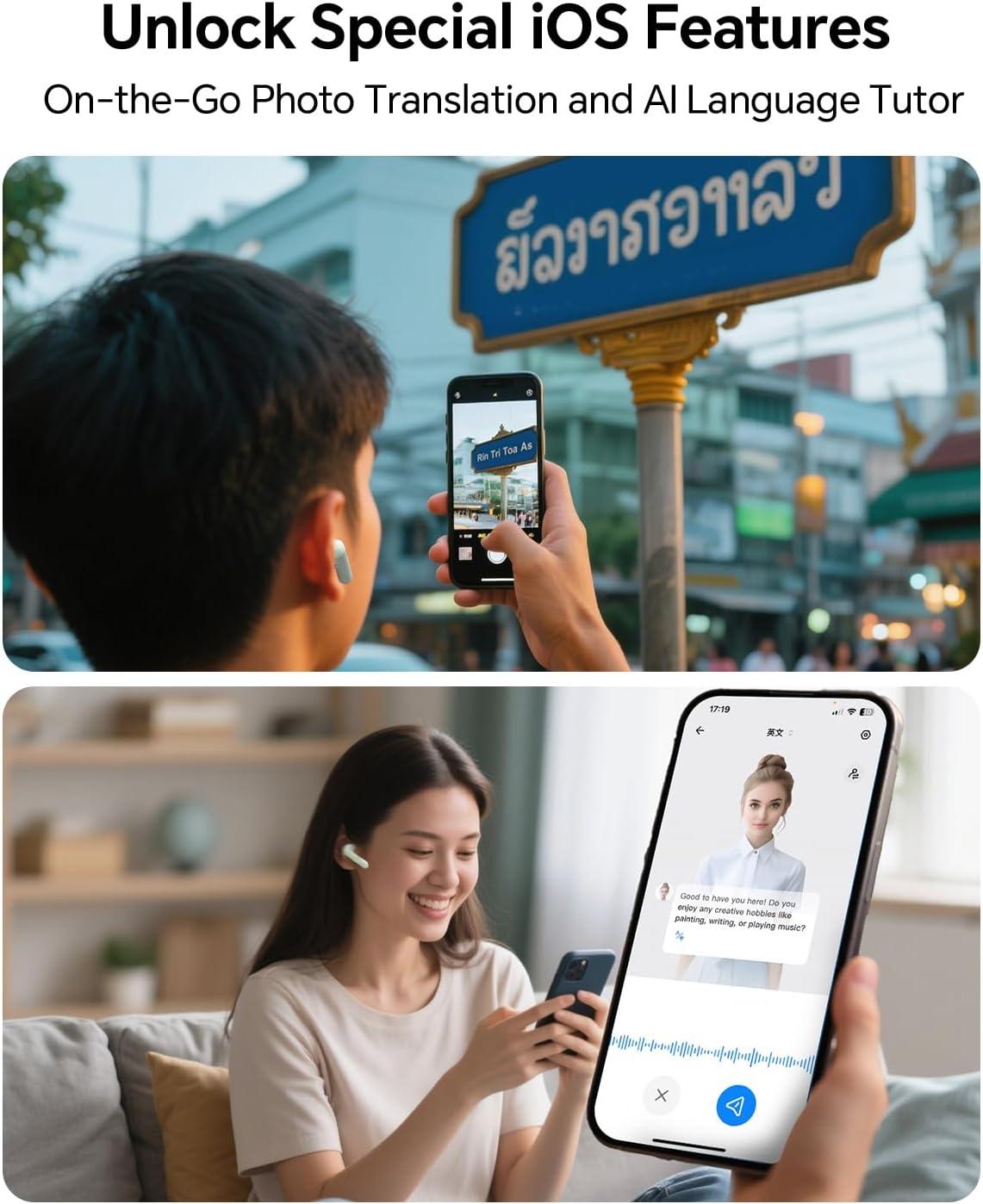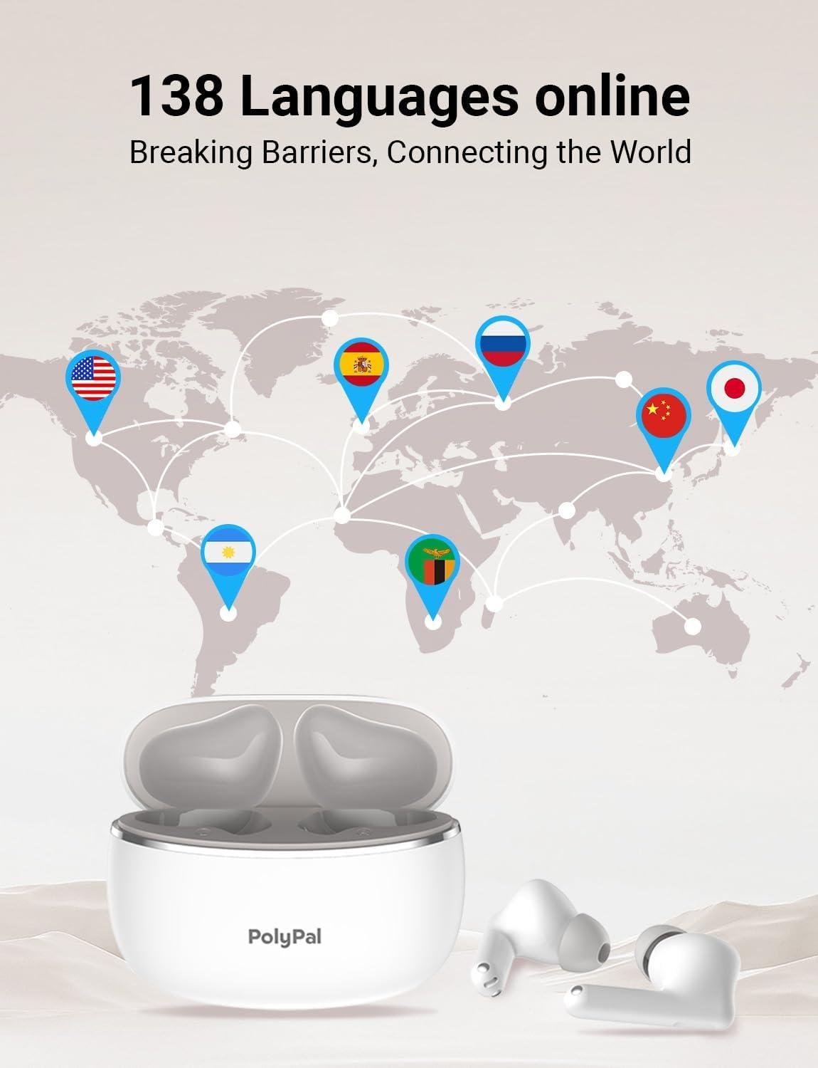 Polypal P1 Tap-to-Talk Interpreter Earbuds:Communicate across languages with ease—simply press and hold the button, speak naturally, and hear your message translated instantly with voice playback. Polypal P1 functions as your reliable Bluetooth translator earbuds, perfect for seamless Spanish-English conversations, business chats, and everyday travel communication.